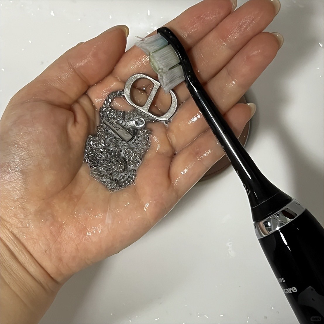 使用电动牙刷来进行首饰,比手动清洗的更加省心省力,而且特别的干净,