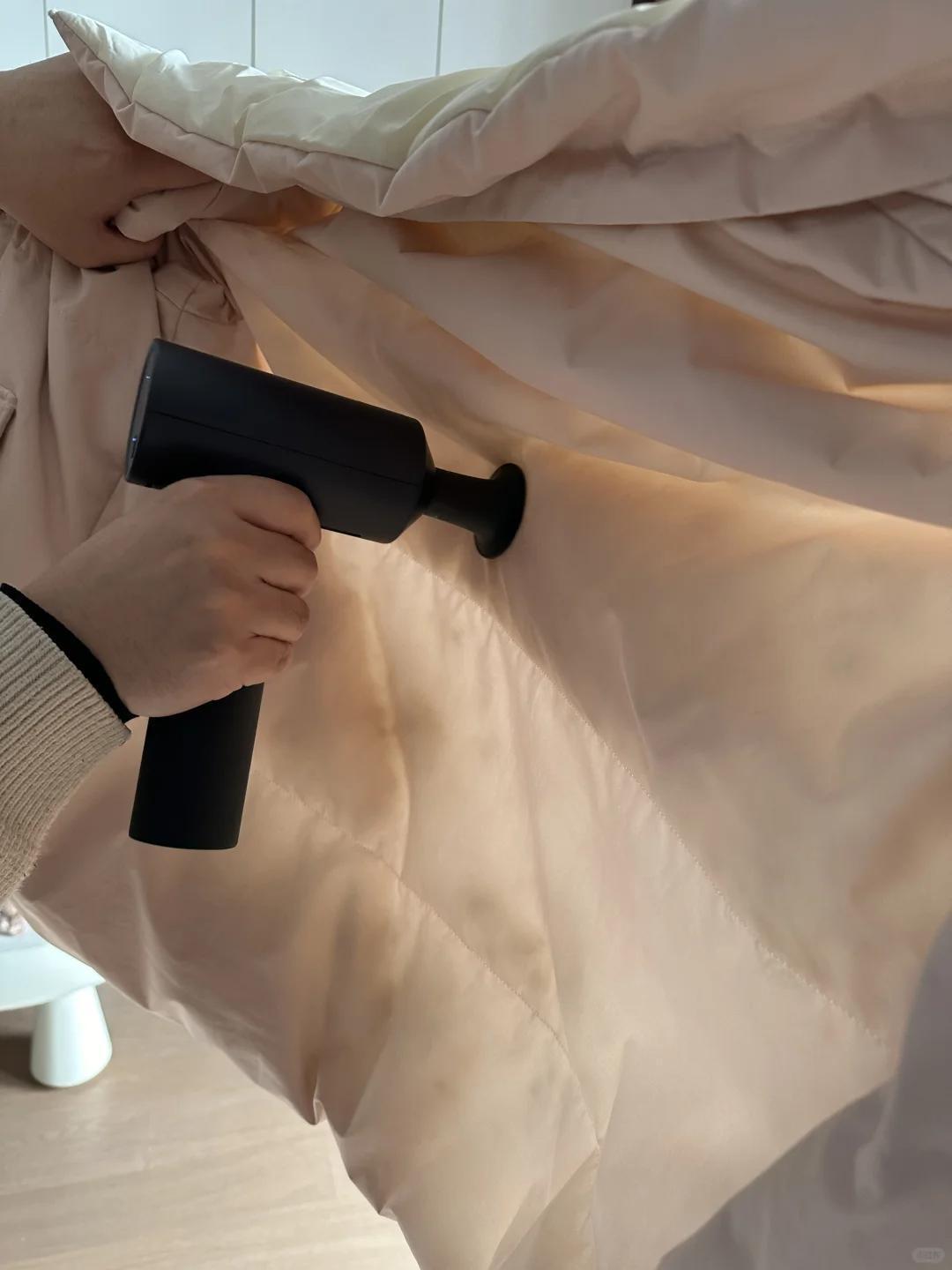 在家里清洗完羽绒服之后,羽绒会团在一起这样不会影响到羽绒服的保暖效果,而在这种情况下,大家就可以使用筋膜枪来让羽绒服重新变得蓬松起来。